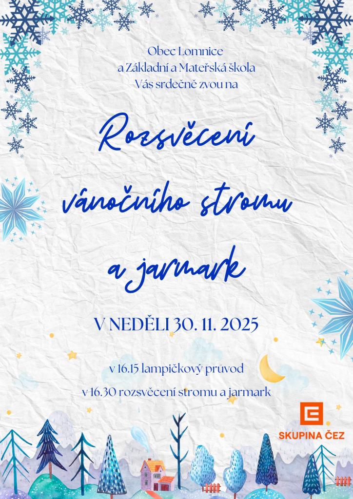 V neděli 30. prosince v 16:15 lampičkový průvod od školy a v 16:30 rozsvěcení stromu a jarmark na Obecním úřadu.